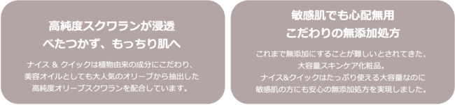 『NICE & QUICK(ナイス&クイック)』は「365日、毎日使うものだから無添加でシンプルに。」をコンセプトに、忙しい女性の素肌と⽣活習慣に向き合う敏感肌用の無添加ボタニカルブランド。
